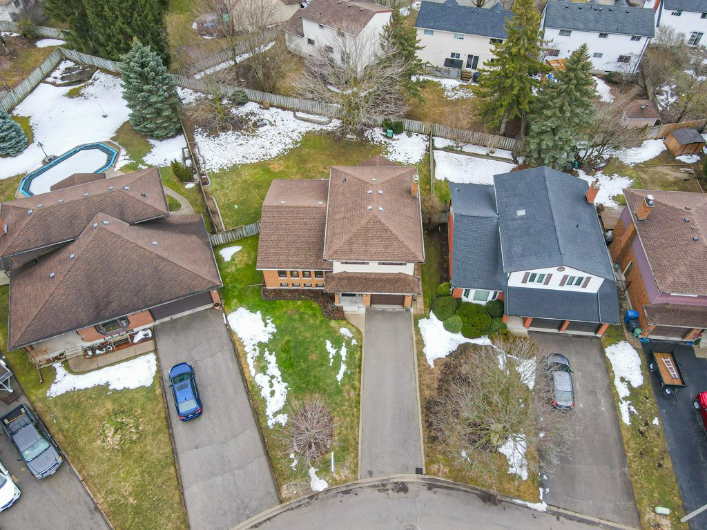 This is a lovely 3 bedroom, 2.5 bathroom family home located on a quiet cul-de-sac in the prime Kortright West neighbourhood of Guelph. It features a pie shaped lot with a with an oversized backyard that spans over 110 ft. along the rear property line. The main levels offer a large living room, eat-in kitchen, dining room, 2-piece bathroom, and a family room that walks out to the sunroom. The upper level has three spacious bedrooms and a 4-piece main bathroom. The primary bedroom is very large, and offers the convenience of a 3-piece ensuite bathroom. The lower level offers a rec room, as well as a games room. The basement is large, open, bright, and provides plenty of extra finished living space for your family needs. Heading down one level lower, there is an unfinished laundry room, workshop, and even a full storage room underneath the garage! The fully fenced backyard features a large composite deck with a gas BBQ, and plenty of space for your kids and pets to run around and play. It is an absolutely beautiful park-like setting, especially in the summer with its mature trees and gardens. The home also has many updates including the furnace and A/C in 2021, roof in 2014, windows in 2011, and it even features an irrigation system to keep the yard lush and green! This home is just steps away from the Hanlon Creek Park and splash pad, the Preservation Park forest and trail system, the dog park, wonderful schools, great restaurants, Stone Road Mall, and a bus route that leads to the University of Guelph. You can’t get much better than this!